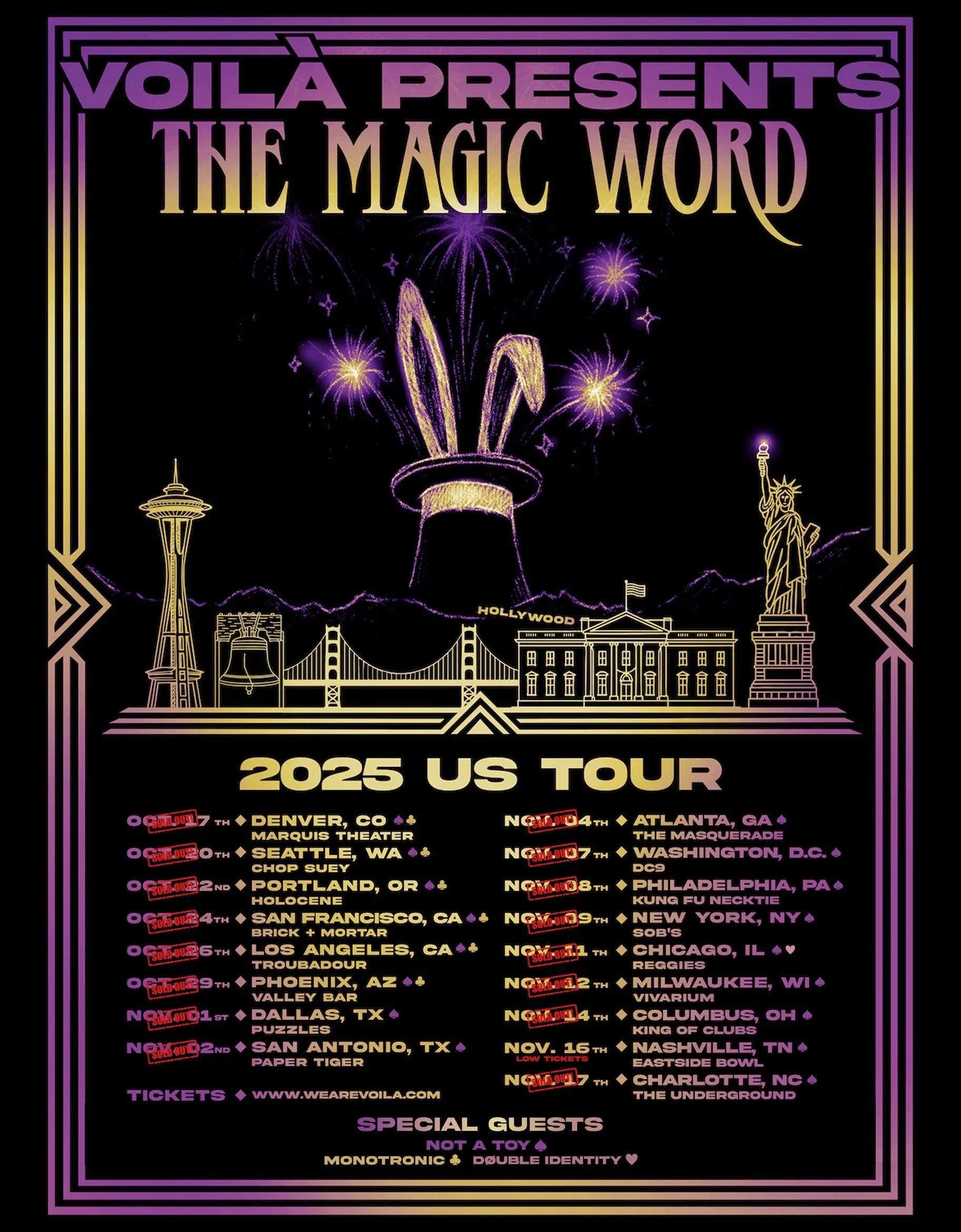 VOILÀ LISTEN NOW TOUR Dates Follow VOILÀ View on Laylo Follow VOILÀ View on Laylo Follow VOILÀ View on Laylo Gain exclusive access totrack TEASES • EXCLUSIVE CONTENT • MERCH DROPS • SPECIAL EDITION ITEMS • FAN COMMUNITY • INTERACTION w/ VOILÀ • DISCOUNTS and more JOIN THE MAGICIANS